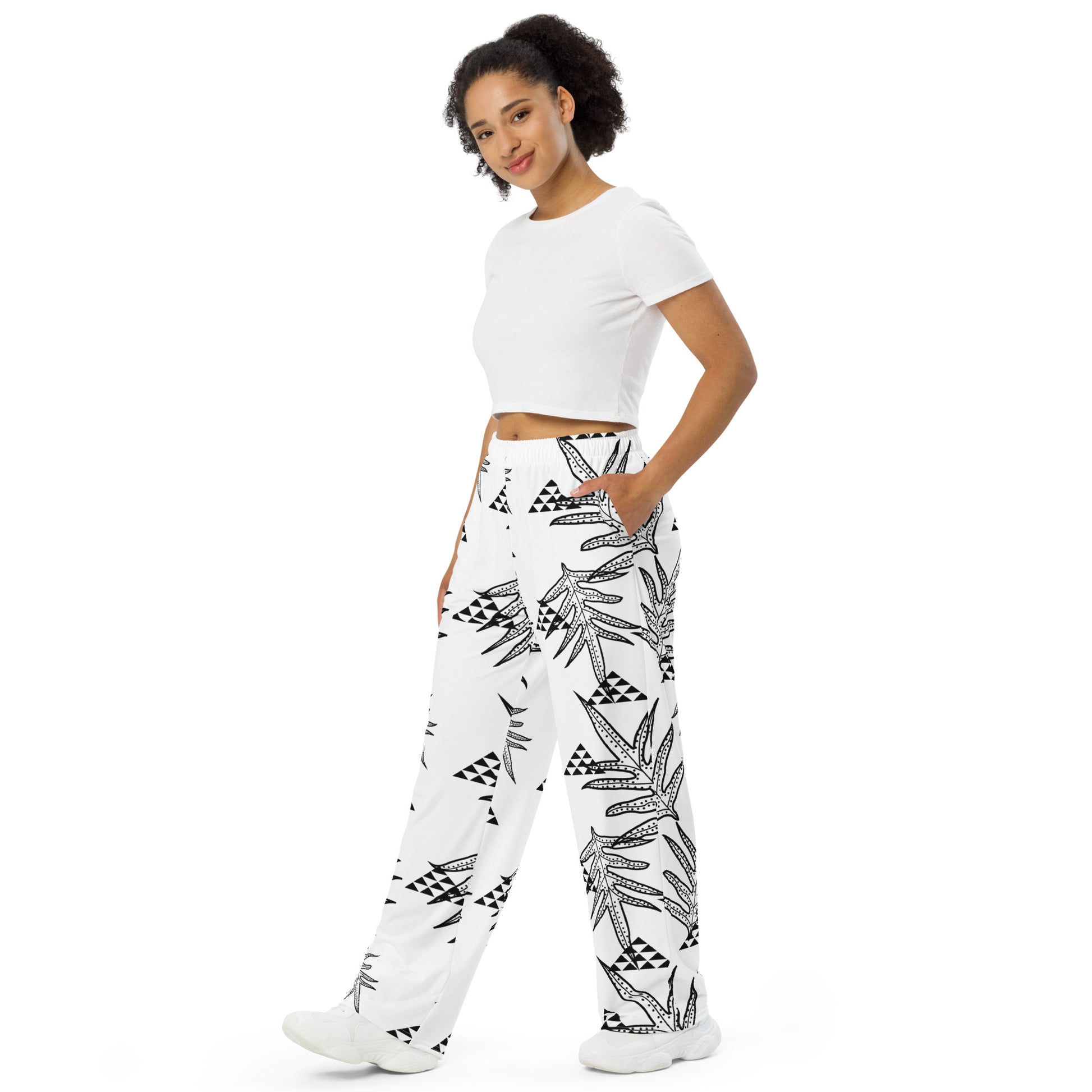 Laua'e White unisex wide-leg pants